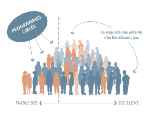 Certaines populations échappent systématiquement aux filets de l’approche ciblée. L’approche ciblée exclut des familles qui auraient eu besoin d’accompagnement simplement parce qu’elles ne cochaient pas les bonnes cases.